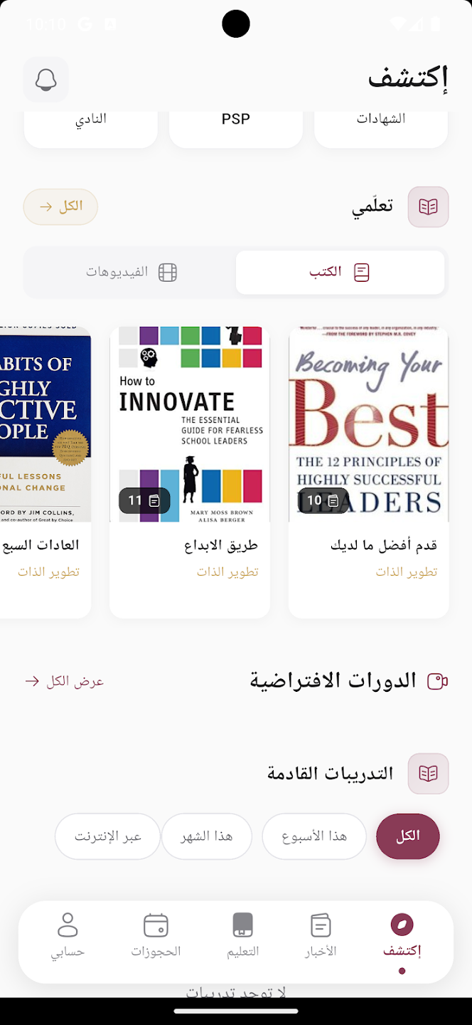 Trainings in the audio hall led by renowned trainers, electronic libraries, video programs, university courses, specialized applications, and so much more.